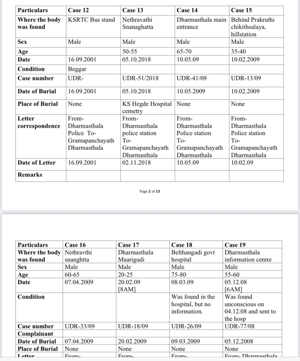In most cases, the Dharmasthala Police informed the Gram Panchayat on the same day via official letters, instructing immediate burial without mention of extended investigation, postmortem details, or attempt at identification.