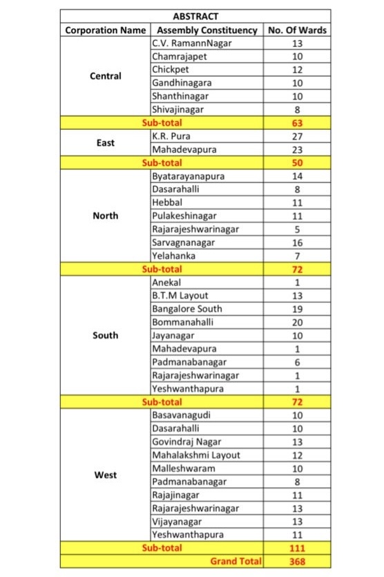 Overall, Bengaluru’s five corporations will now have a total of 368 wards, a significant increase from the existing 198 wards.