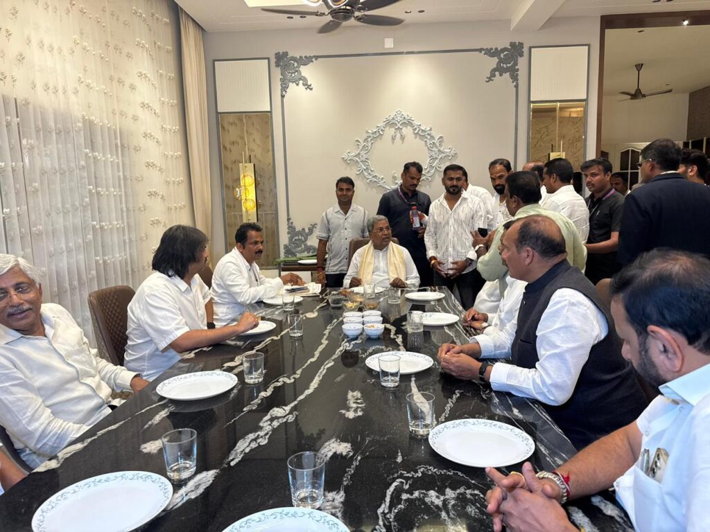 CM Siddaramaiah, Madhu Bangarappa and others are seen at Shetty’s residence