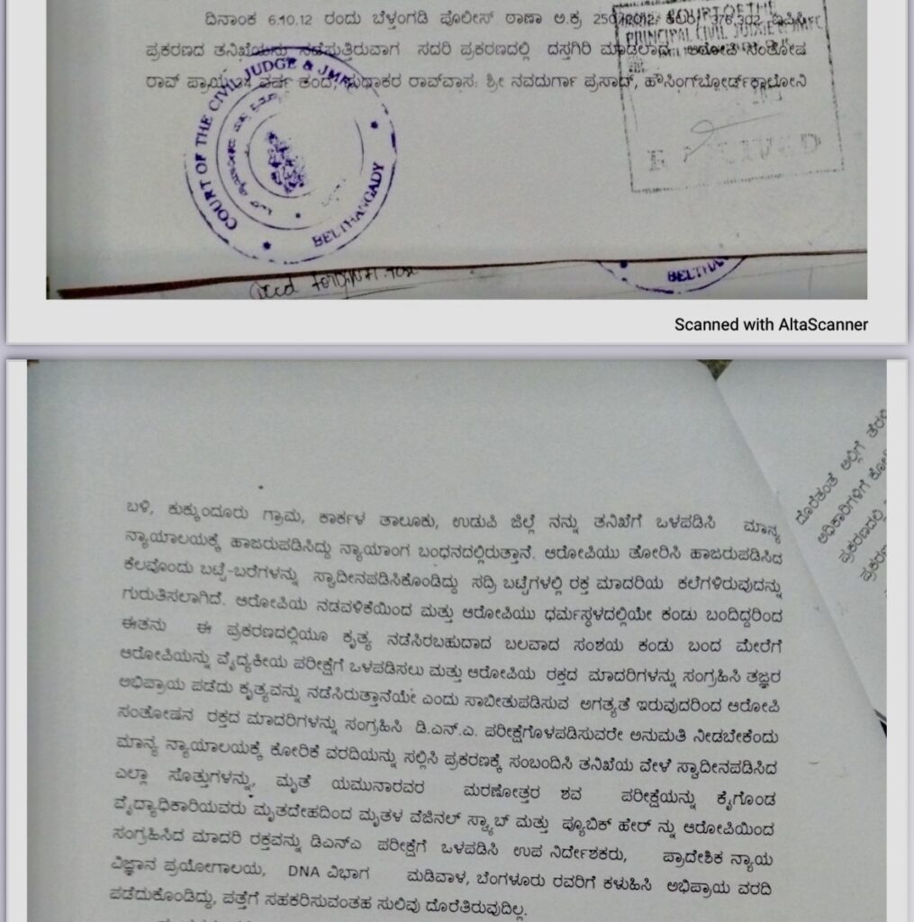 Acquitted accused Santosh Rao was arrested by the Belthangady police on October 6, 2012—three days before the brutal murder of 17-year-old Soujanya. This date of arrest was documented in the investigation report submitted by the very same police in the Yamuna and Narayana Sapalya murder case. The blrpost.com has accessed and read the investigation report.