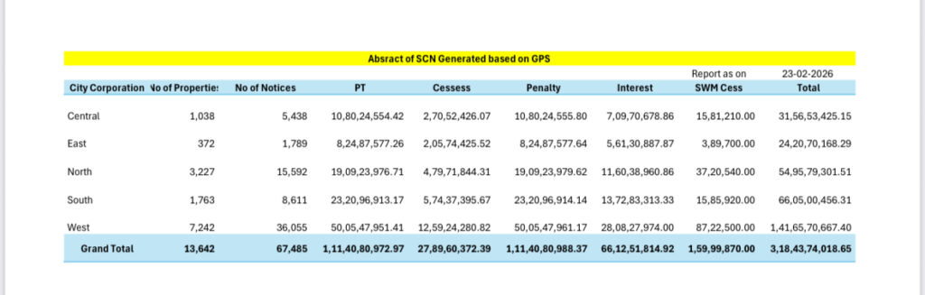 Officials revealed that around 67,000 show-cause notices have been generated—effectively one notice per assessment year—as most defaulters were found to have underpaid property tax for an average of five years. The notices demand payment of the evaded tax along with applicable interest and penalties.